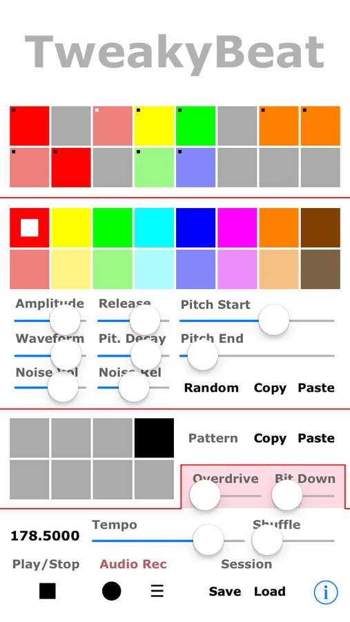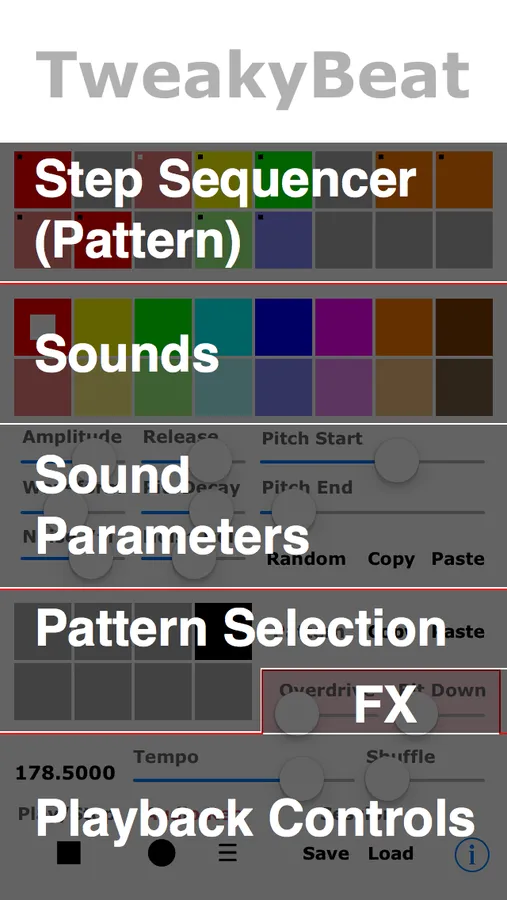 I didn't want TweakyBeat to be like that. I wanted to built a simple drum machine that felt alive. TweakyBeat is quirky, monophonic and full of personality, and it produces electronic loops with tons of groove!