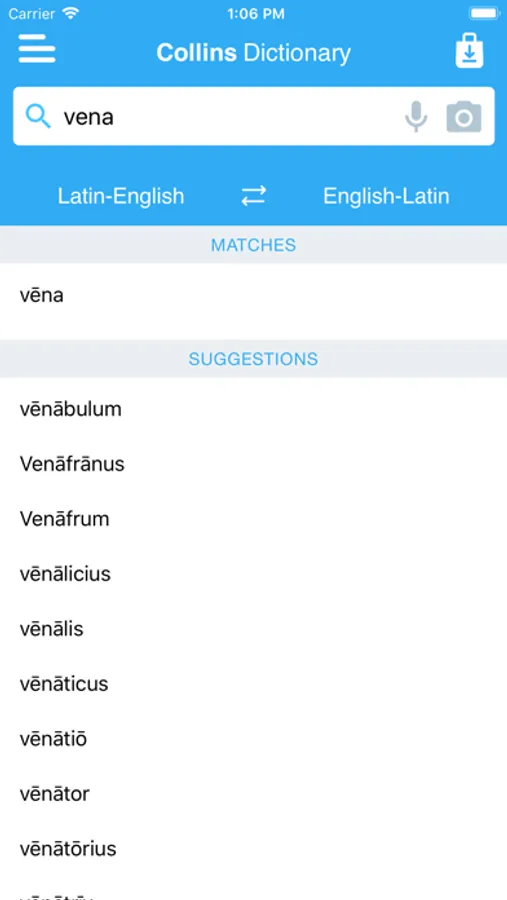 • Camera search looks up words in the camera viewfinder and displays results in seconds.