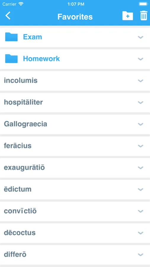 • ‘Favorites’ that allow you to create custom folders with lists of words.
