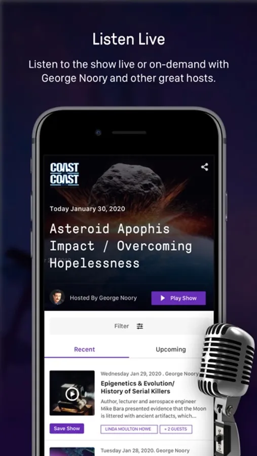 Coast to Coast AM, a nightly radio show hosted by George Noory, explores the world of the paranormal, alternative ideas, and the unexplained. This app offers live and on-demand audio streams, and podcast downloads for the last five years of shows for Coast Insider members.