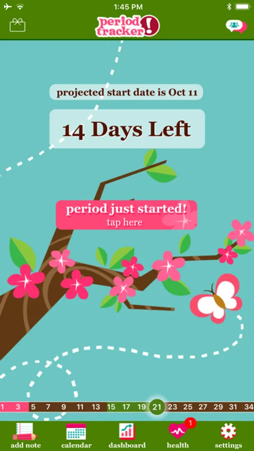 * Homescreen shows your predicted ovulation, eight day "fertile window,” and your cycle day. Great for trying to conceive.