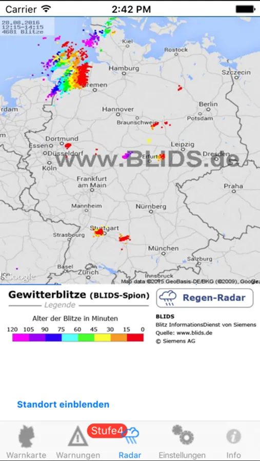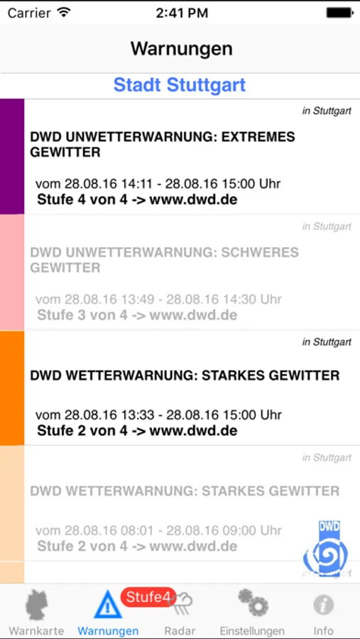 + Anzeige der aktuellen sowie letzten Wettermeldungen für die eingestellte Region
