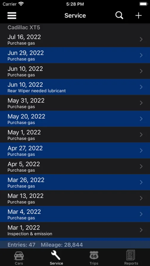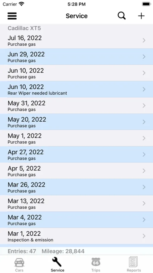 •Swipe delete for all entry types, cars, service and trips