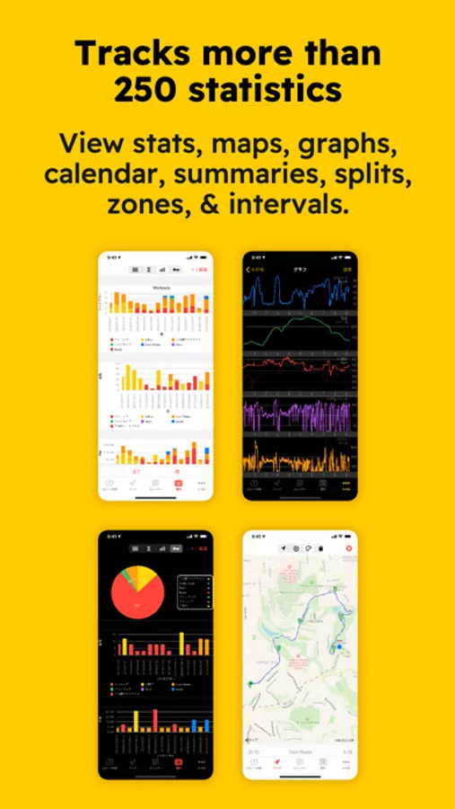 - Configurable workout pages with maps, graphs, stats, and lap data