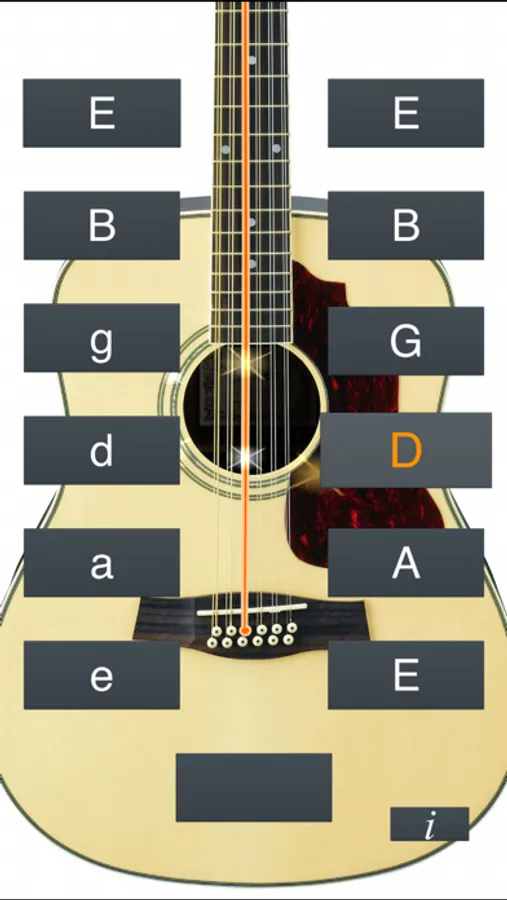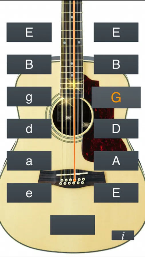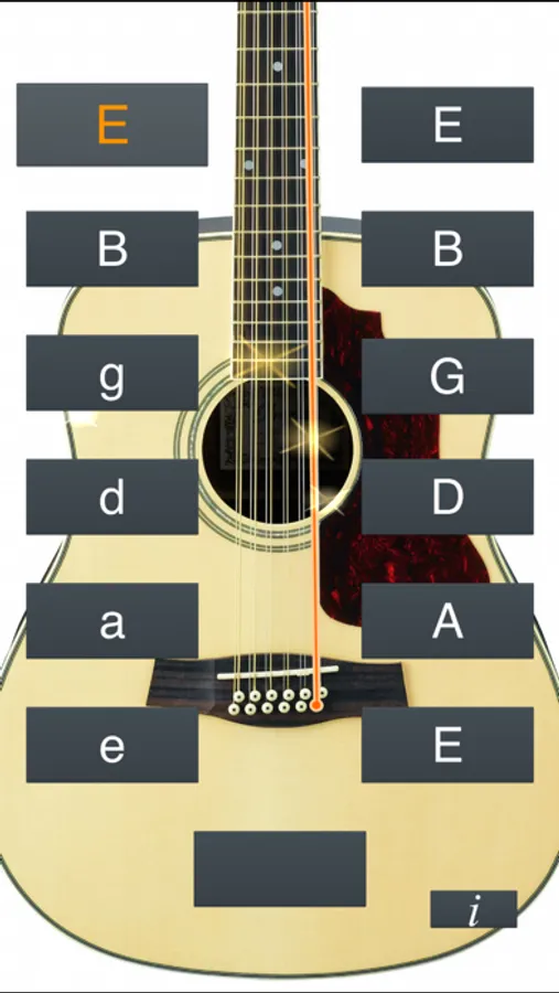 Simple 12-string guitar tuner to tune up your 12-string guitar. This is for the standard eEaAdDgGBBEE 12 String Guitar tuning.