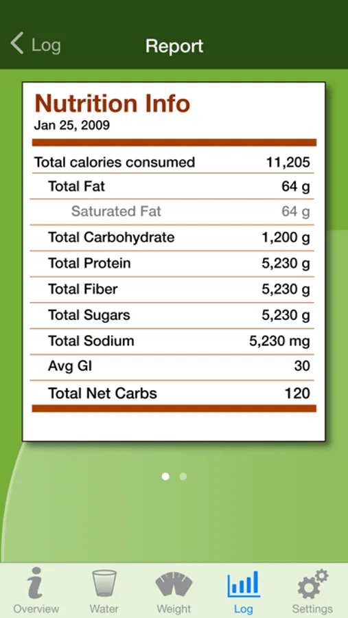 View nutrition reports for day, week or by user defined period