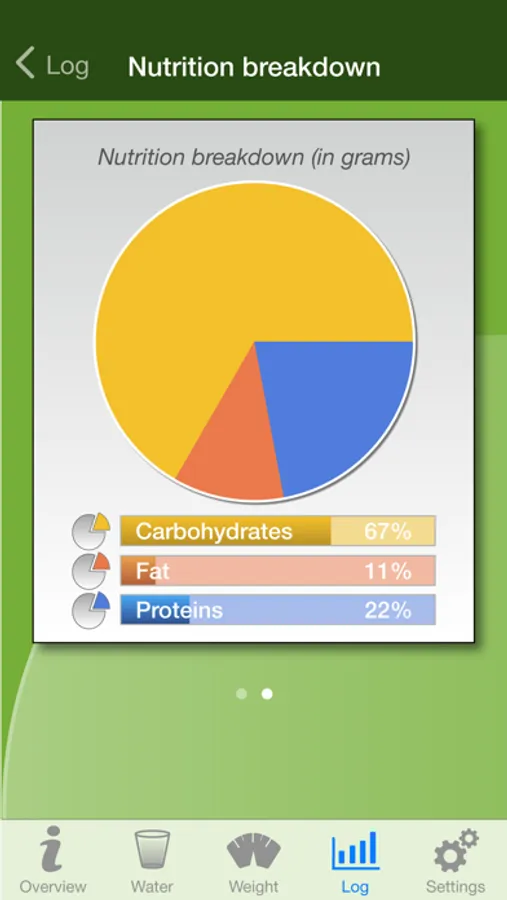 Full Screen graphs for Carbs, Daily Weight and Water
