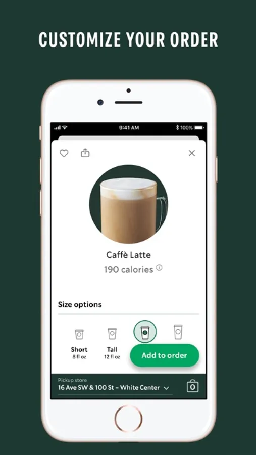 Customize and place your order, then pick up from a nearby participating store without waiting in line. Reorder quickly with Siri.