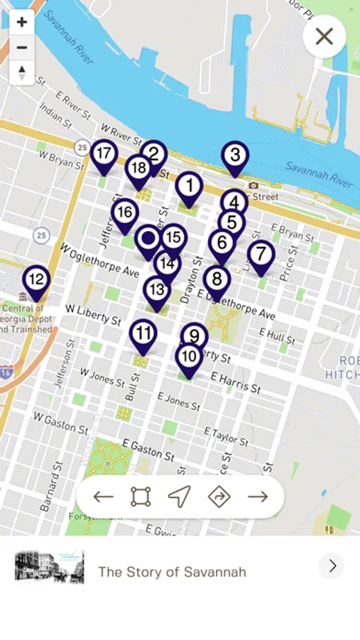 About the tour: Choose your own route or follow our recommended tour route that leads you through Savannah’s beautiful historic district, in and around famous landmarks, museums, and shopping and dining options. Enjoy professionally narrated stories with period music and sound effects. Navigate the content through the detailed stop menu or tour map which links to a GPS tour map. The tour works offline too so you don’t have to worry about needing a network or wi-fi connection.