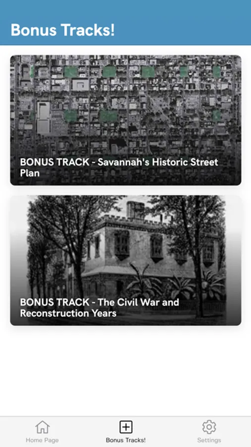 Audio Tracks: Savannah History at a Glance, Johnson Square, Bay Street, River Street, Reynolds Square, Broughton Street, Oglethorpe Square, Columbia Square, Colonial Park Cemetery, Cathedral of St John the Baptist, Lafayette Square, Madison Square, Visitors Center, Chippewa Square, Bull & Oglethorpe Ave, Wright Square, Telfair Square, Franklin Square, Ellis Square, Parting Words, Bonus Savannah’s Historic Street Plan, Bonus The Civil War & Reconstruction Years