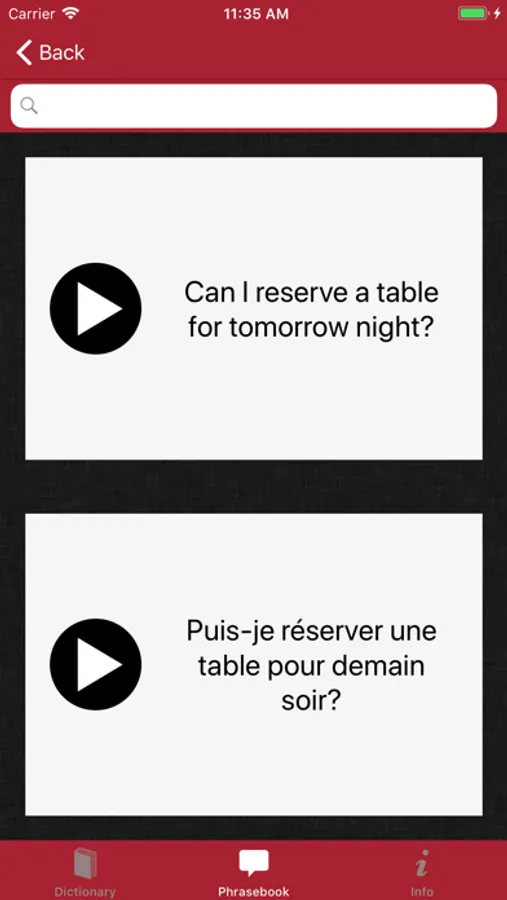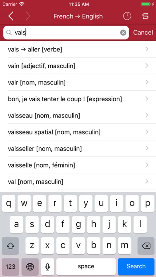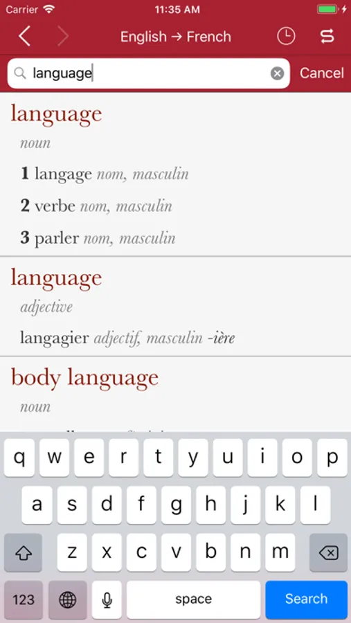 Use this app on iPhone or iPad to access thousands of common French and English translations, and listen to more than 800 words and phrases recorded by native speakers, with no internet connection required.