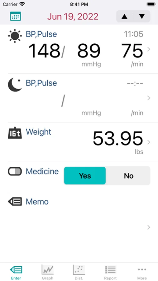 (Morning and evening blood pressure, weight, taking medicine, notes and blood pressure recorded time)