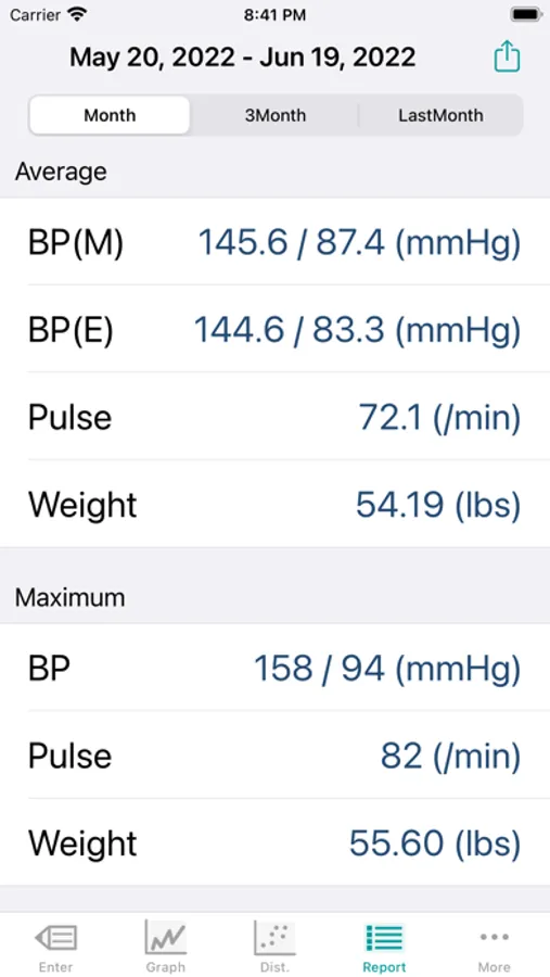(Average value, maximum value, minimum value, variation, ME difference, frequency of medication)