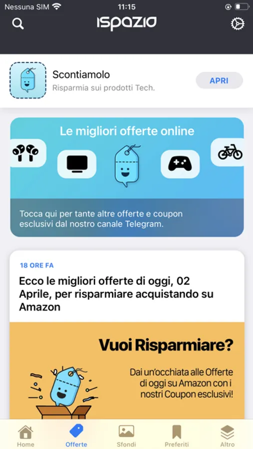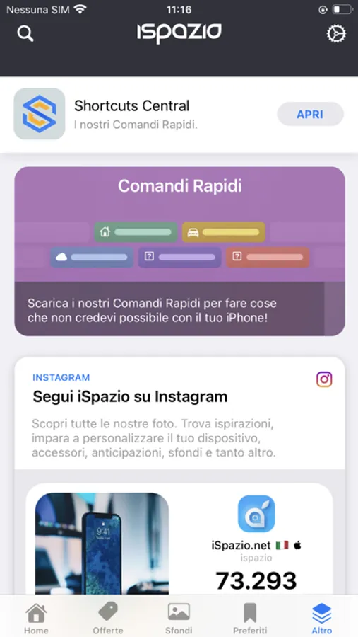 Con la versione 4.0 di iSpazio siamo riusciti ad accorpare in un solo posto tutti i nostri servizi. Infatti, troveranno spazio anche Scontiamolo, Wallpapers Central e Shortcuts Central.