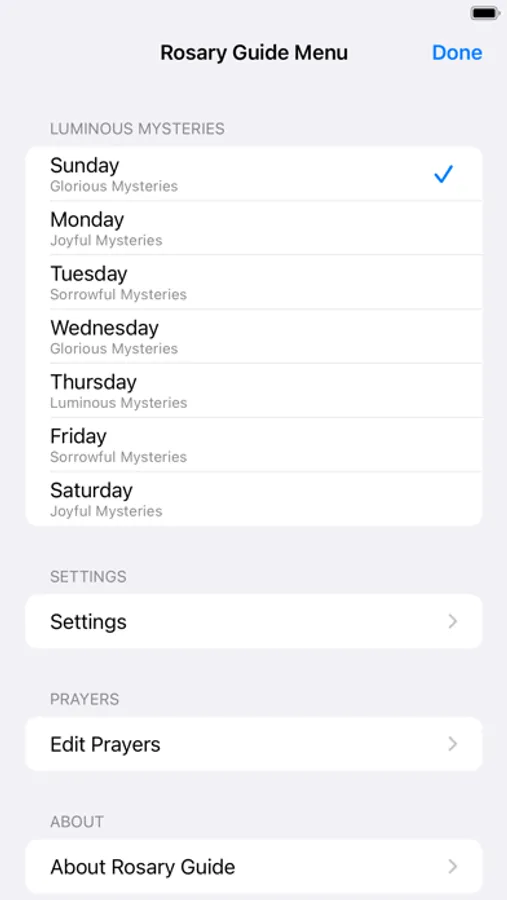 • Auto-selects the Mysteries for the day of the week.