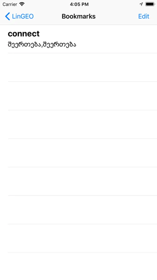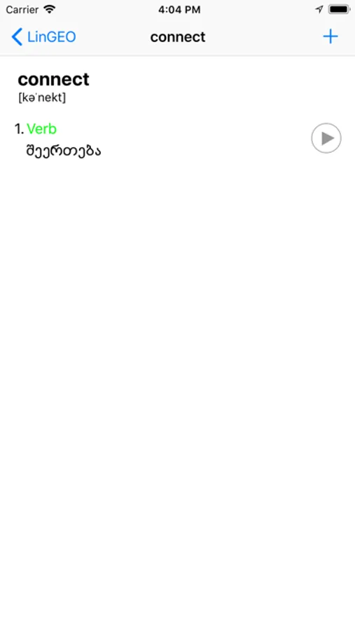 Application offers detailed view of the search words with transcription and all possible Georgian translations.