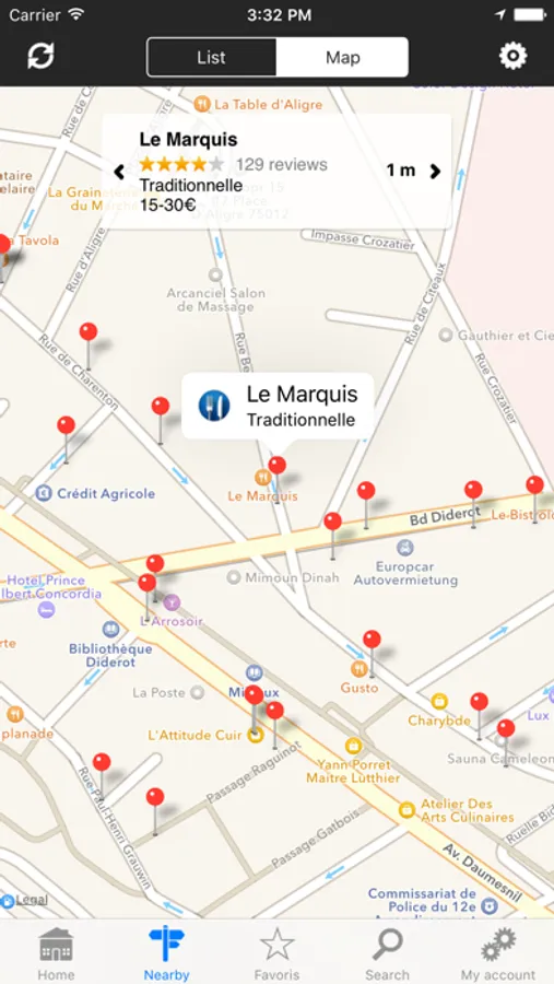 - Settings allowing you to display eg the best restaurants in the 10 km round, Chinese restaurants less than 1 km, breweries within 200 m...