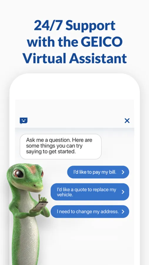 Ever wish you had a teeny tiny person in your pocket that you could ask questions about your policy, billing or more? Us too. So just ask GEICO’s Virtual Assistant.