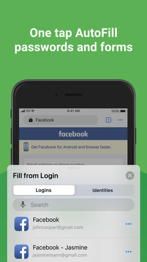 ◆ Your passwords are always with you. Add, view, and edit your Logins, Identities, and Safenotes from any device.