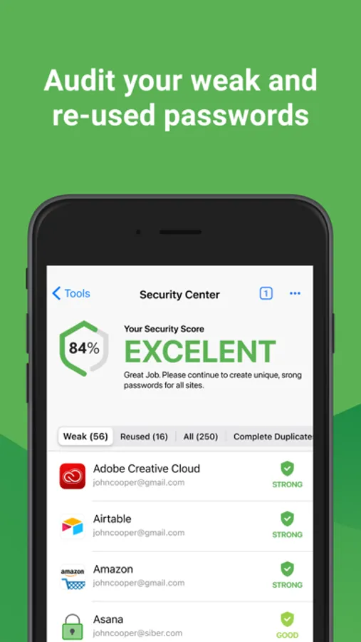◆ Security Center finds your weak, re-used, or duplicate passwords.