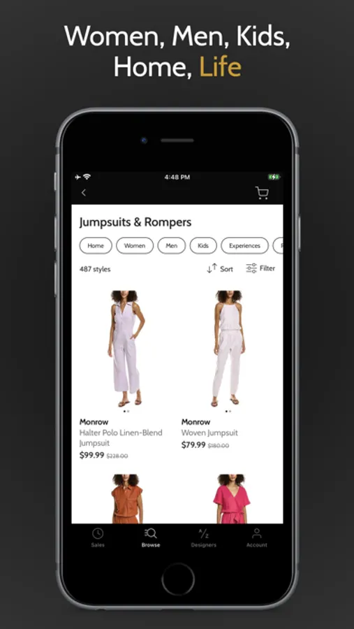 + Women: Trending dresses and skirts, shirts and sweaters, outerwear, denim and activewear. You will also find deals on intimates and loungewear, pants and shorts, and suits and blazers, along with swim and maternity brands. Plus, luxury shoes and trending jewelry and watches, as well as health and beauty musts.