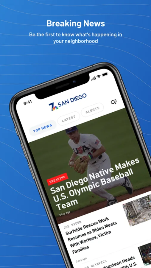 The NBC 7 San Diego news and weather app connects you with local news, local weather and live news streaming. Free to download and to use, the app delivers San Diego breaking news alerts and weather alerts for your location that can be customized and easily managed in the app settings.