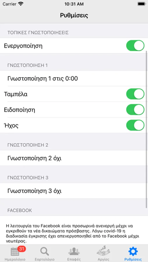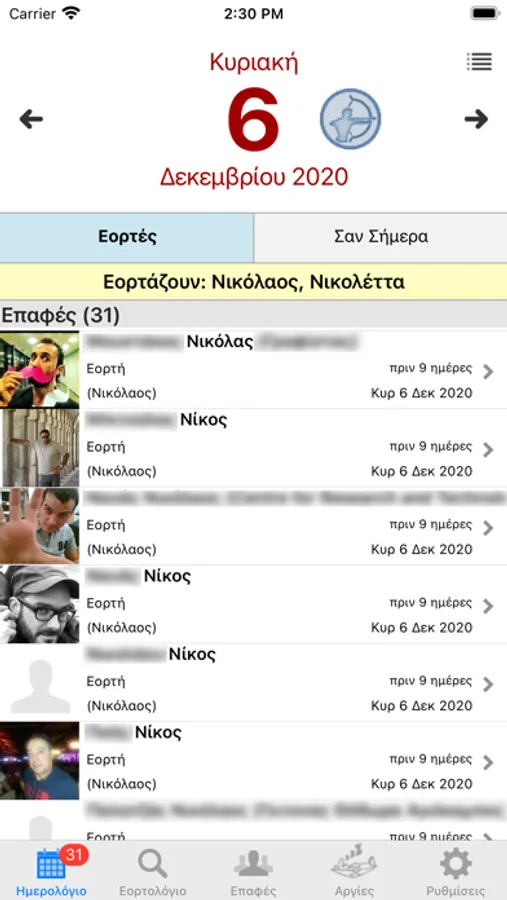 Γίνεται αυτόματα σύνδεση με τις υπάρχουσες επαφές του τηλεφώνου για γενέθλια/εορτές