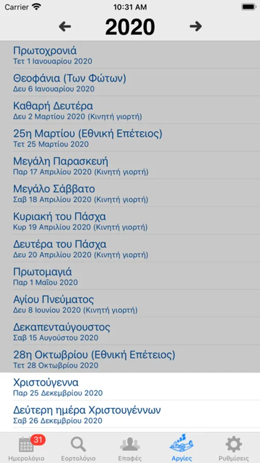 "Η καλύτερη εφαρμογή για γιορτές+αργίες μαζί. Τις έχω δοκιμάσει όλες και αυτή εδώ είναι η καλύτερη, φοβερό interface και πραγματικά πολύ καλό matching στα greeklish ονόματα." - great_vc