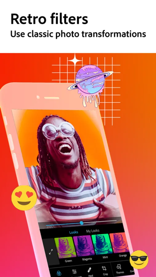 Photoshop Express delivers a wide and diverse selection of features and effects at your fingertips. Use our photo editing app to personalize and perfect your experiences with stickers and overlays, apply blur, enhance colors and images with Looks filters. Create a photo collage, generate memes, fix and enhance your share-worthy moments for stunning social media content. Unlock unlimited possibilities with Photoshop Express Premium!