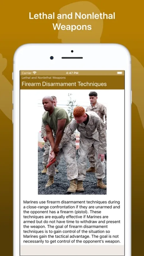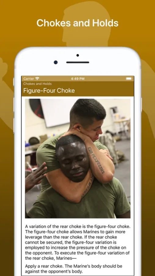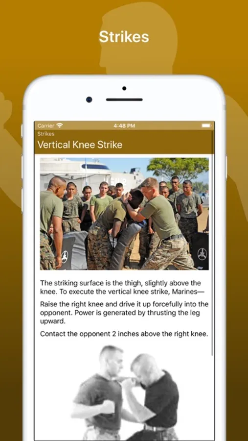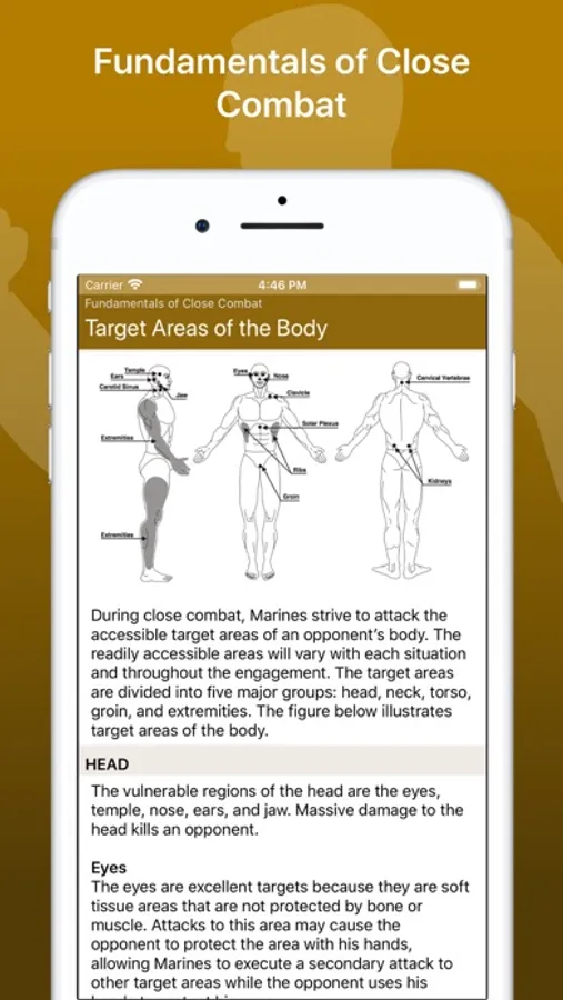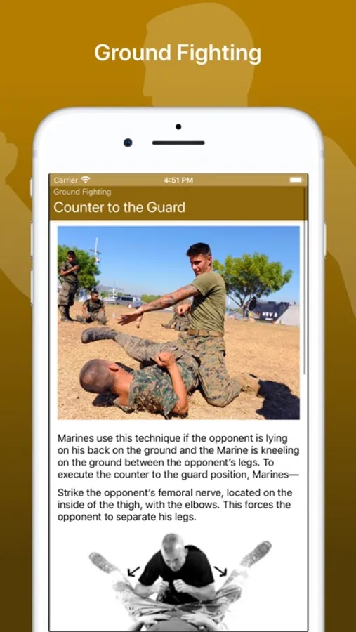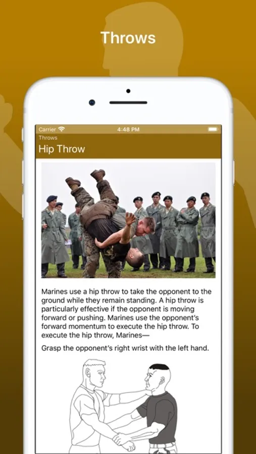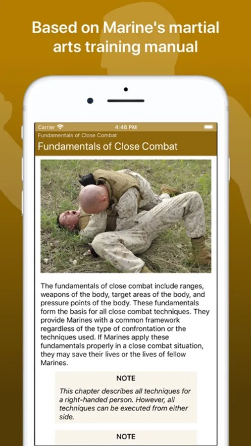 The Marine Martial Arts app is the U.S. Marine Corp training manual and includes hundreds of pages of great content. This app guides individual Marines, unit leaders, and close combat instructors in the proper tactics, techniques, and procedures for close combat.