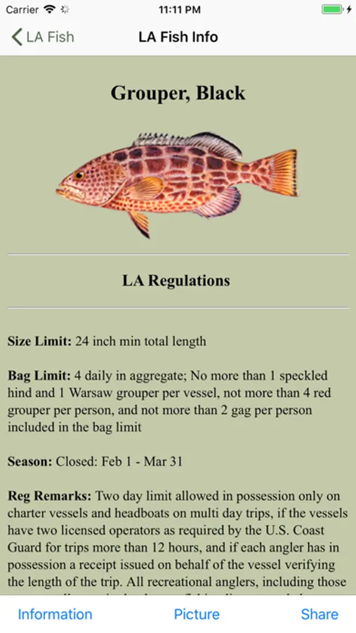 Provides a search-able list of Saltwater Fish for the State of Florida. You can view illustrations of the fish, regulations, and fish identification data.