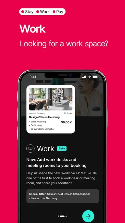 WORK: Search and book work desks and meeting rooms. For a limited time, save 20% at Design Offices in top German cities.