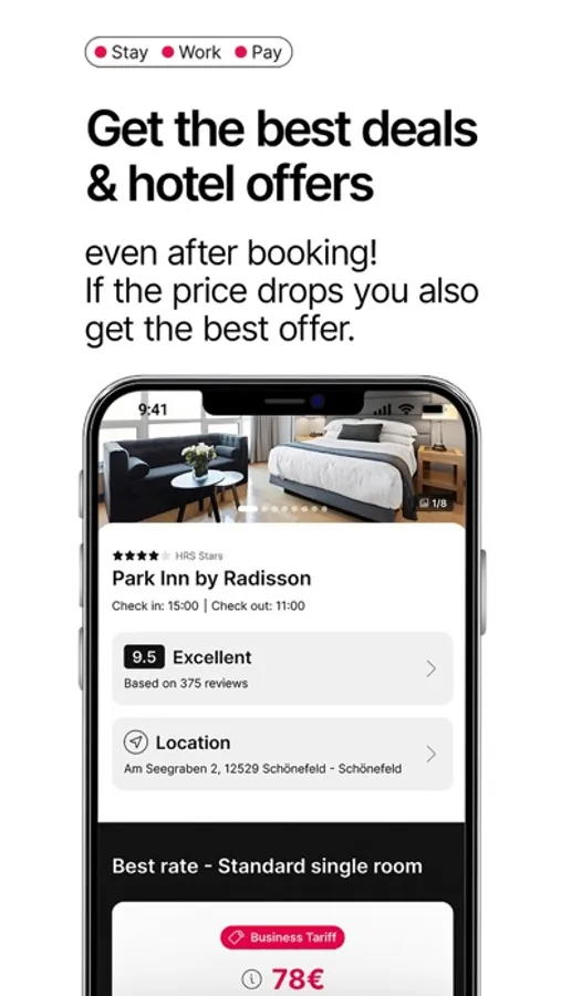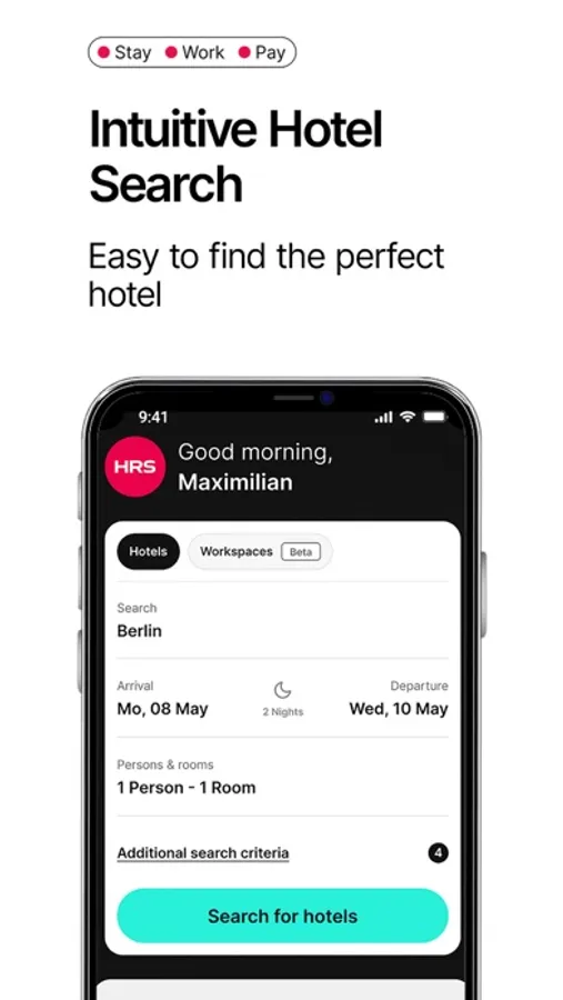 The HRS App helps you Stay, Work & Pay seamlessly on the go.