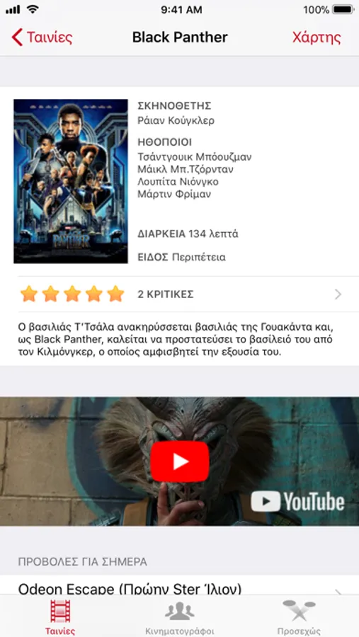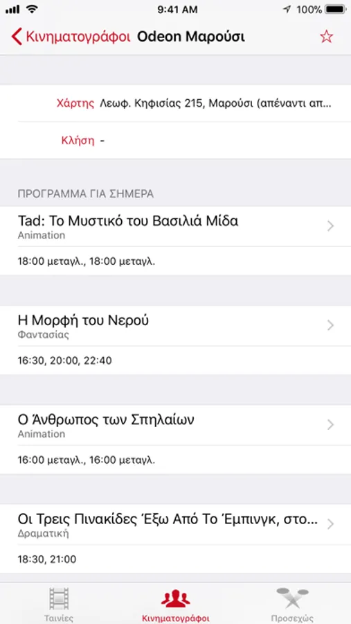 - Δυνατότητα εντοπισμού του κινηματογράφου της επιλογής σας με χρήση του Χάρτη