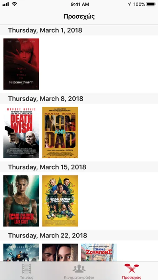- Εμφάνιση των ταινιών που ανοίγουν Προσεχώς, σύμφωνα με το επίσημο πρόγραμμα των διανομέων, με όλες τις απαραίτητες πληροφορίες