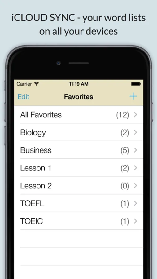 • iCLOUD SYNC - your word lists will be automatically synchronized between all your devices.
