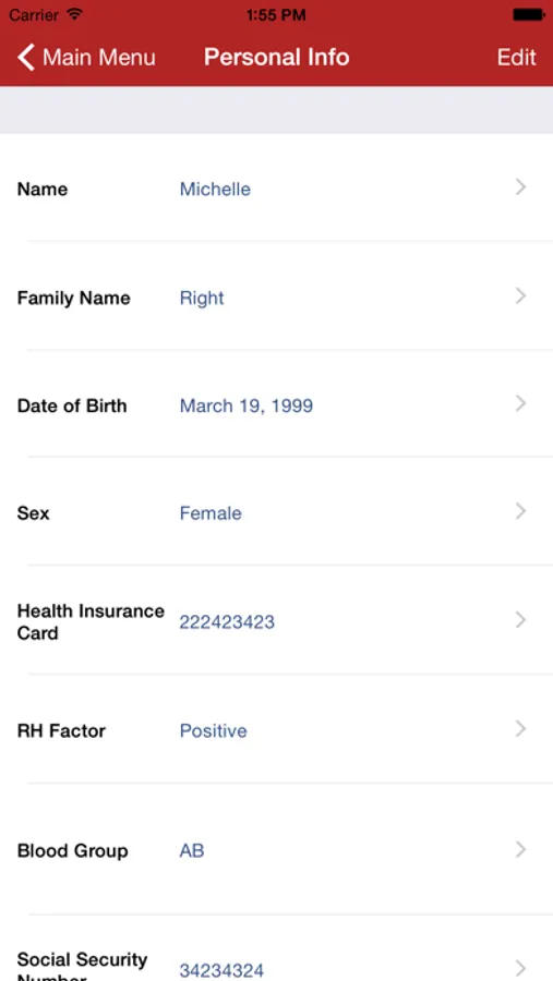 - Your family main personal and health data (blood group, RH factor, health service number….)