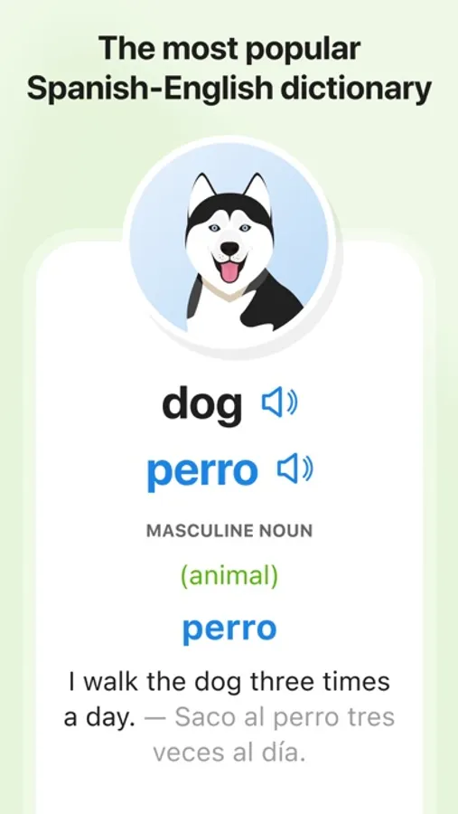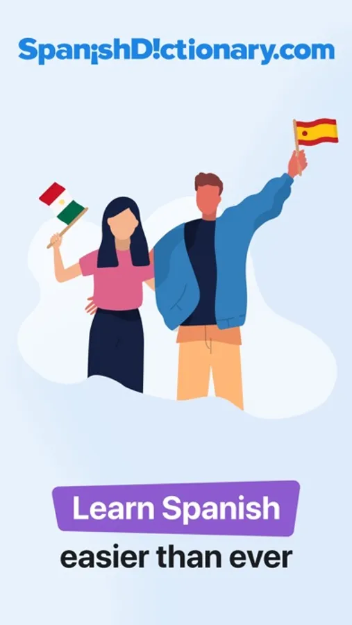 Learn Spanish online or offline for free with SpanishDictionary.com, the leading Spanish-learning app trusted by millions. Translate anything between Spanish and English, look up the conjugations for every Spanish verb, and practice with our interactive quizzes, lessons, and drills. Watch thousands of pronunciation videos, browse millions of example sentences, and learn a new word each day with the Word of the Day.