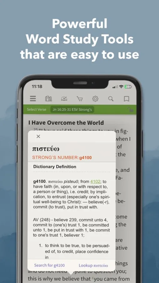 -Tap to quickly read definitions of words in the Bible’s original languages
