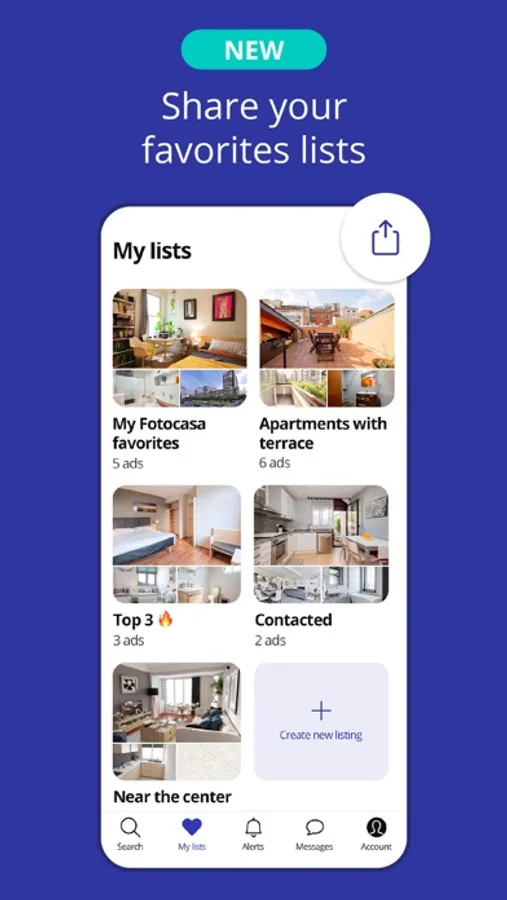 New functionality alert! Fotocasa launches in exclusive the Wishlist, a new feature to help you organise better your favorite flats or houses and help you while apartment hunting. You can also share the lists of favorite homes with your loved ones and thus find your future home in a more comfortable and simple way.