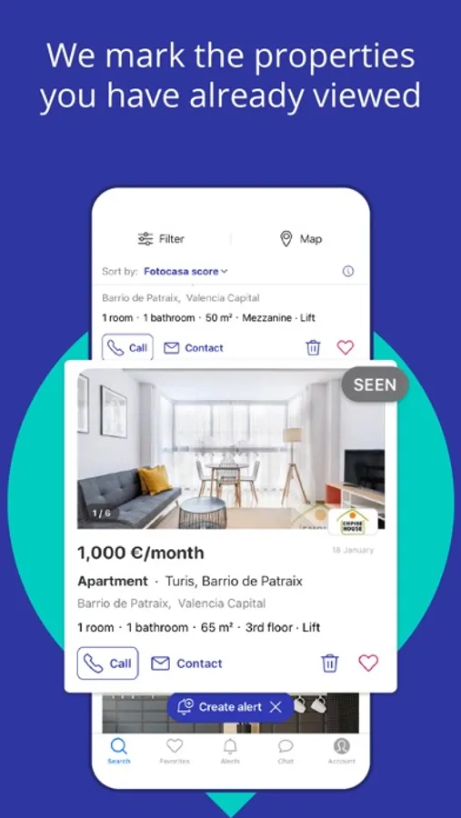 Through the fotocasa app, activate alerts to be notified when ads similar to the searches you have previously made are published. This way you will be able to manage any changes in the properties you have in your favourites.