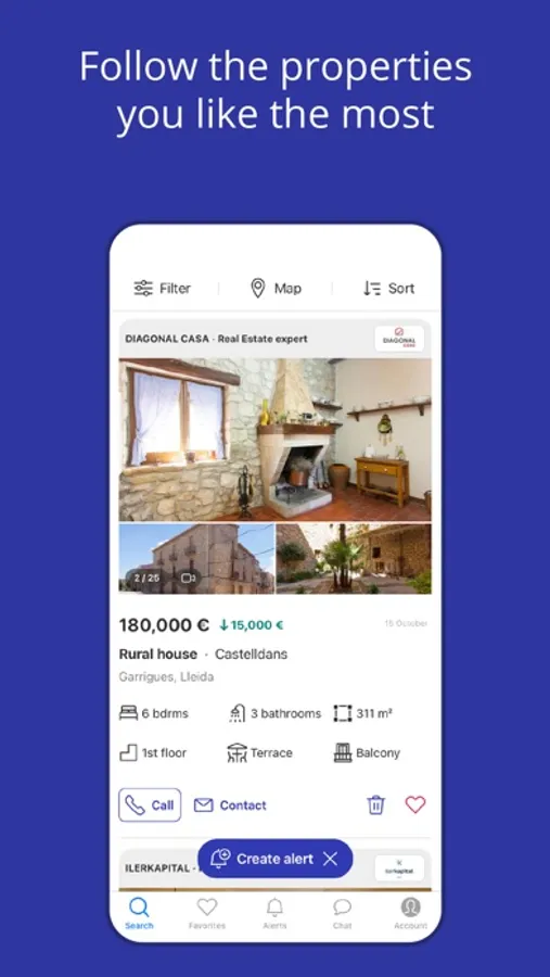 Save as favourites those flats, houses and properties that you have liked the most, to keep them close at hand and be aware of any changes that may occur. Consult your favourite searches and ads from any device.