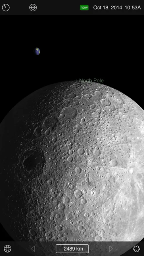 Use the multitouch screen to manipulate the view. Spin above the surface, or switch to Telescope mode to see the Moon as it appears from your location on Earth. Adjust the display time and watch the sunlight shift over the lunar landscape. A "tag cloud" floats just above the surface, labeling terrain features and spacecraft; touch any label to find out more about that feature. Moon Globe also shows you where the Moon and Sun are in the sky with its dynamic sky compass.