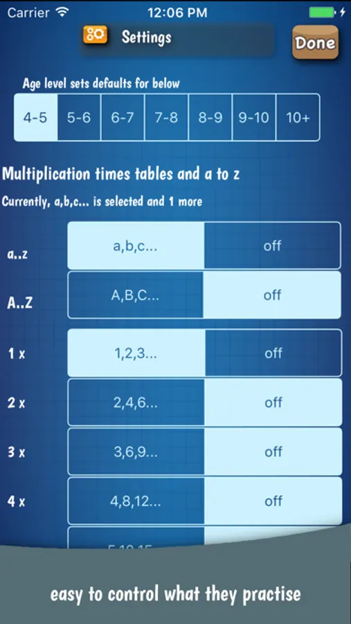 Customise it to the needs of your child through its wide range of settings (e.g. lowercase or uppercase letters, 1 through to 12 multiplication times tables, sound effects and hints)