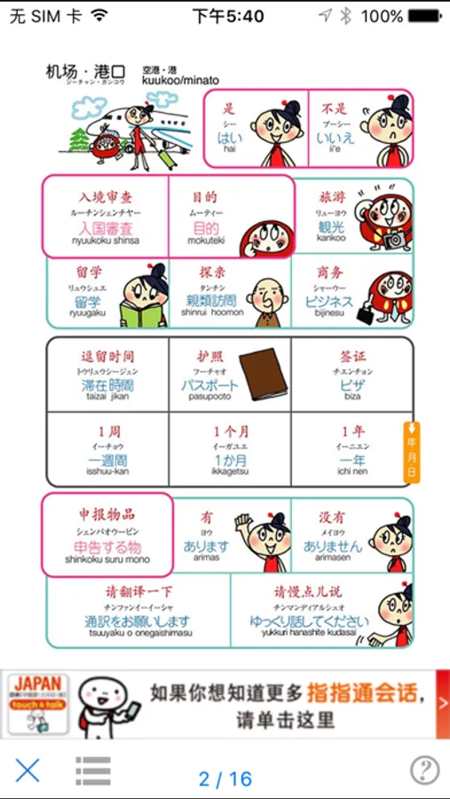 不懂文法也没问题。节录的词句是在实际会话上可以使用的,只要单击词句就可以用日语和对方交谈。