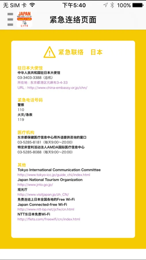 汇整在日各国大使馆、警察局、医院等紧急联系方式,以备不时之需。