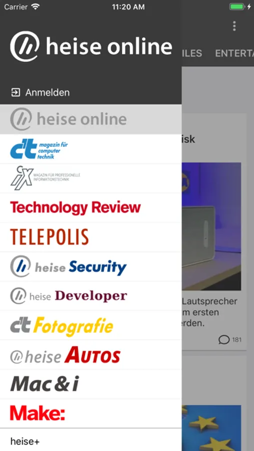 Die aktuellsten Nachrichten aus dem heise Newsticker, von heise+, den Magazin-Websites von c’t, iX, Technology Review, Mac & i, Make, Telepolis sowie den Themenbereichen Security, Foto, Developer und Autos sind leicht über das per drag-and-drop konfigurierbare Seitenmenü zu erreichen.