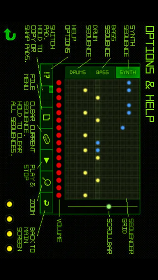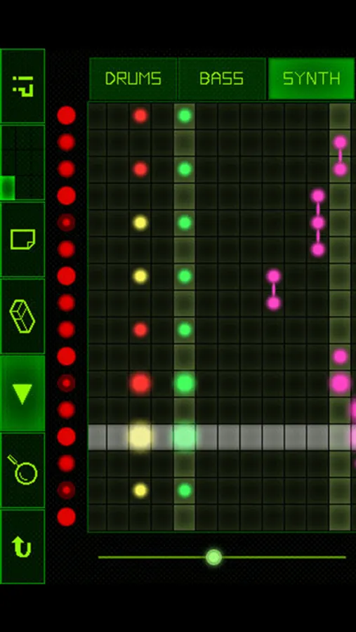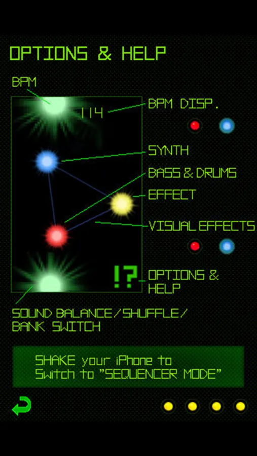 Shake your iPhone while you are in the main screen to switch to sequencer mode. By just plotting sounds on the grid you can make your own songs!