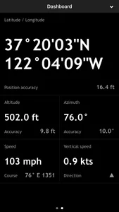 Find and track your location and get detailed real-time GPS data – coordinates in dozens of formats, altitude, course, current, maximum and vertical speed, using imperial, metric, nautical and surveying units.