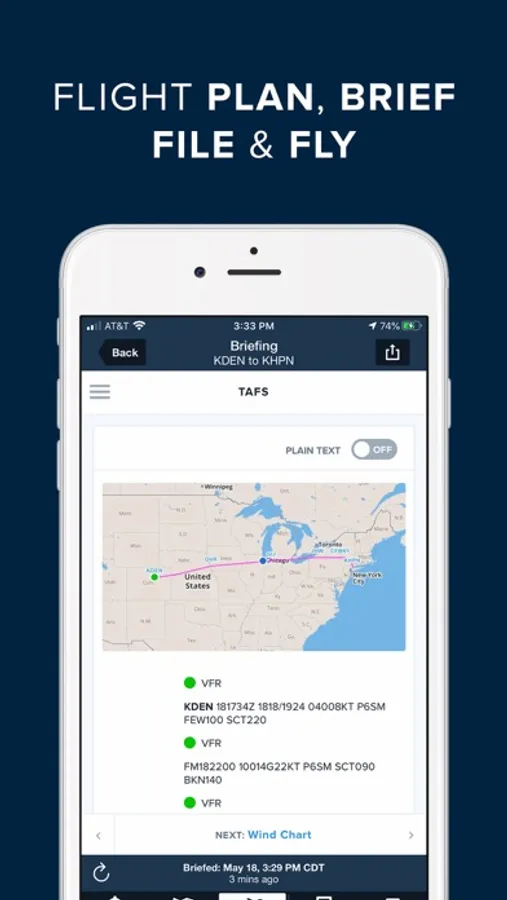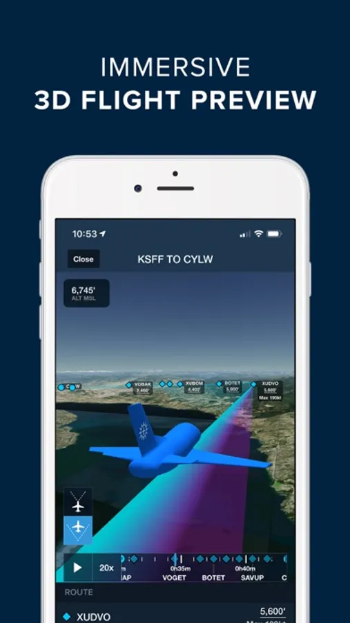 Plan flights with Touch Planning on the Map or full-featured form-based Flights view. Tap out a route in seconds and quickly see if flights will be affected by weather or TFRs. Helpful Route, Altitude, and Procedure Advisors make planning easy and accurate. Generate a graphical preflight briefing and file your flight plan directly from the app. Print a professional-grade Navlog for inflight reference.